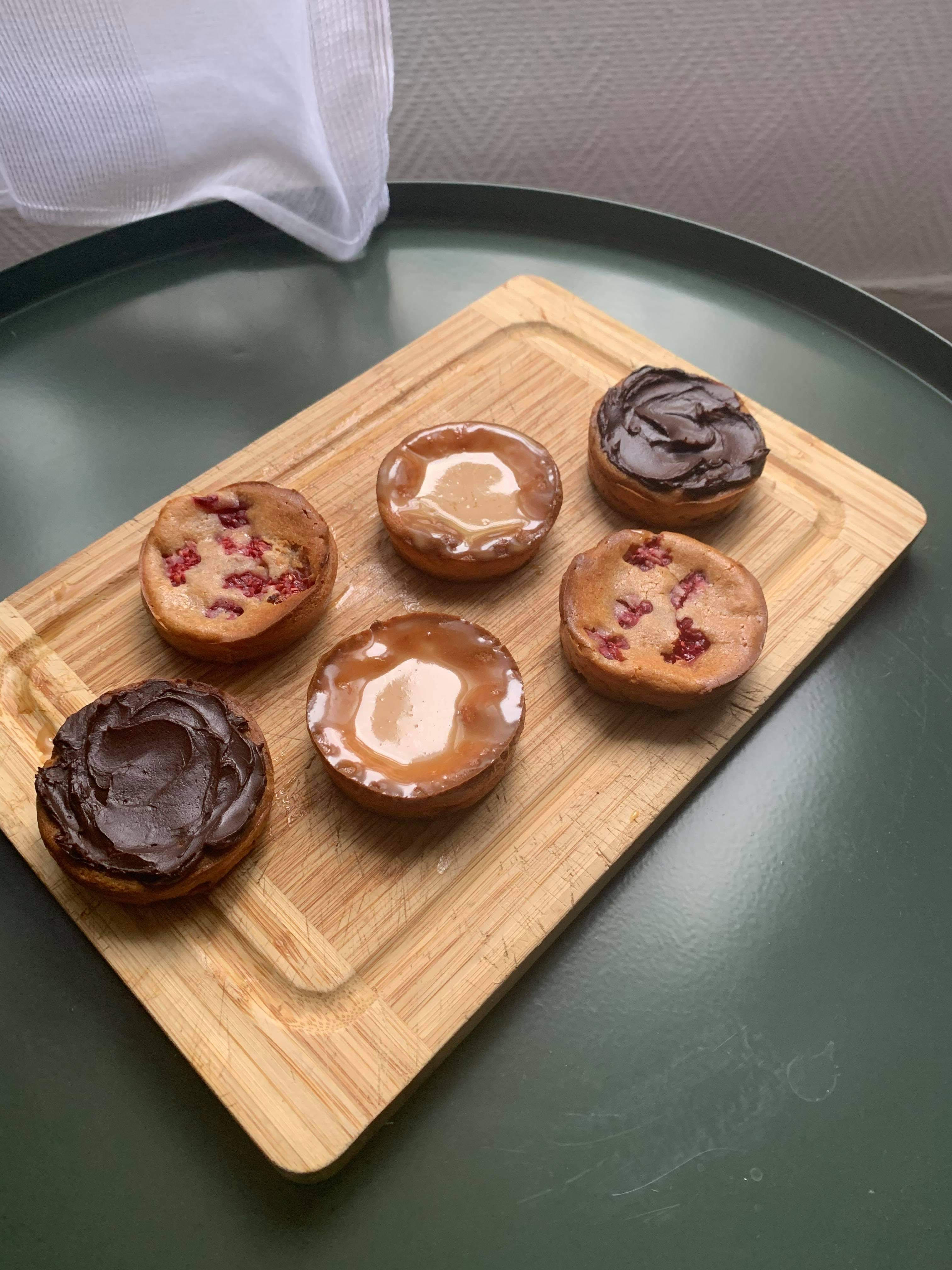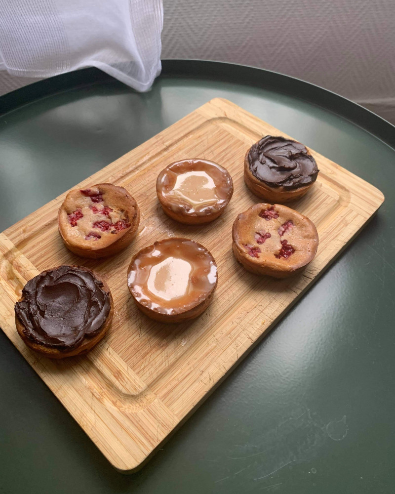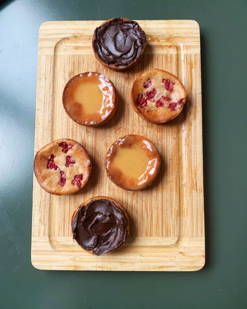 Homonymous with "year growth" in Chinese and traditionally eaten for Lunar New Year. These are baked and feature brown butter chocolate, raspberry, and milk tea flavors.