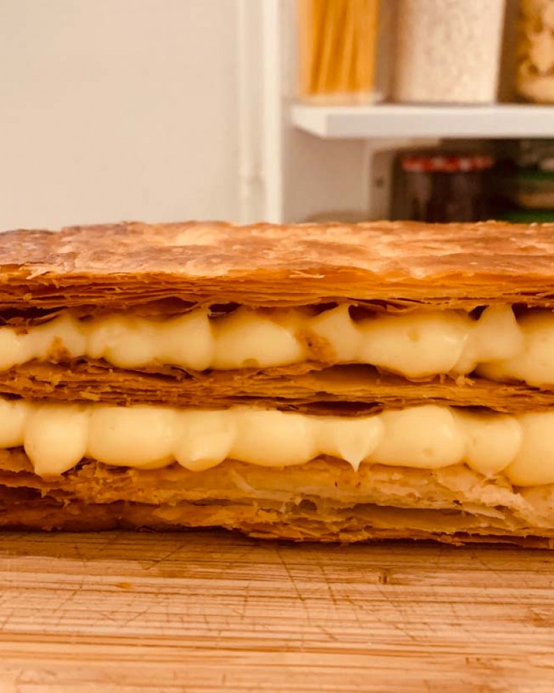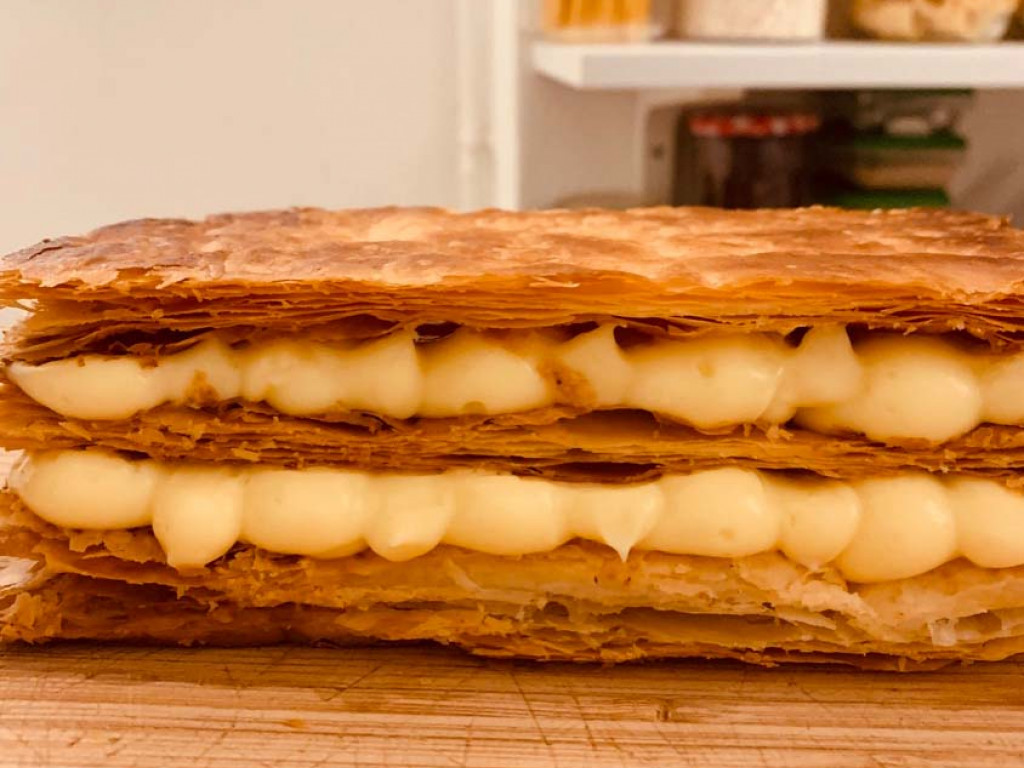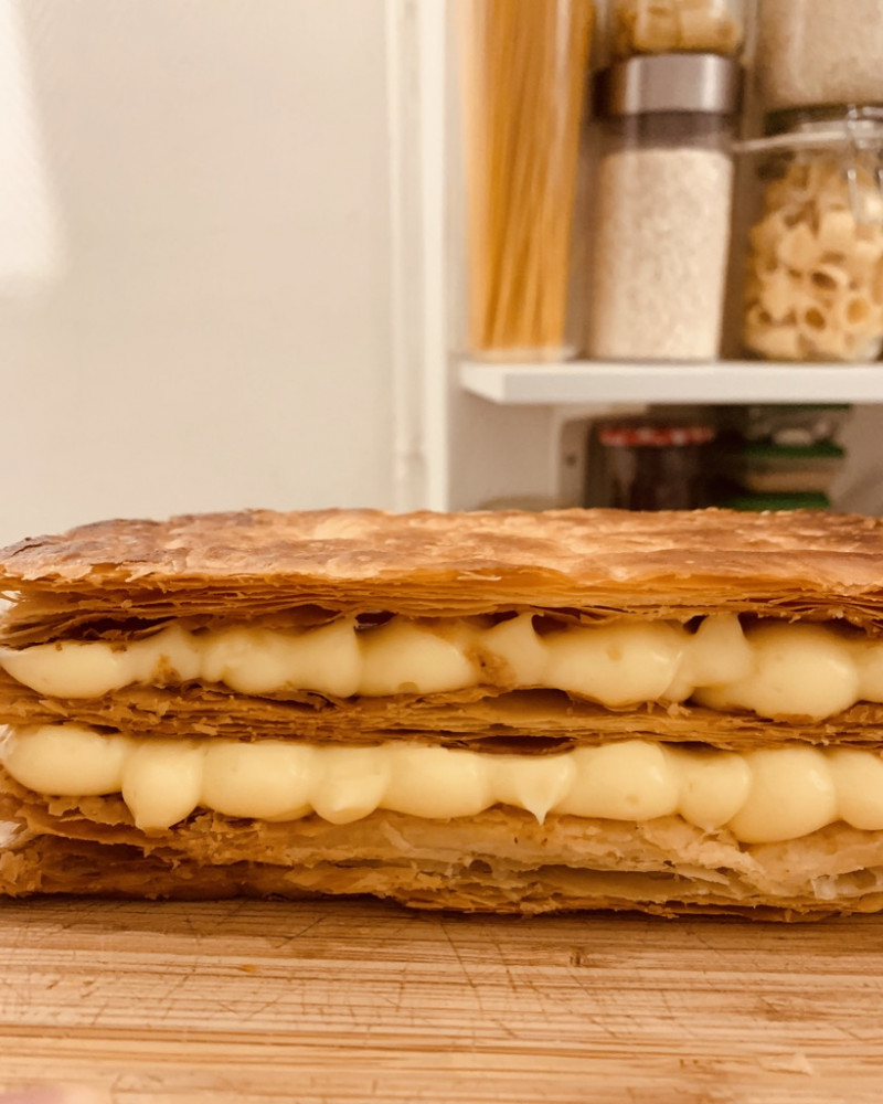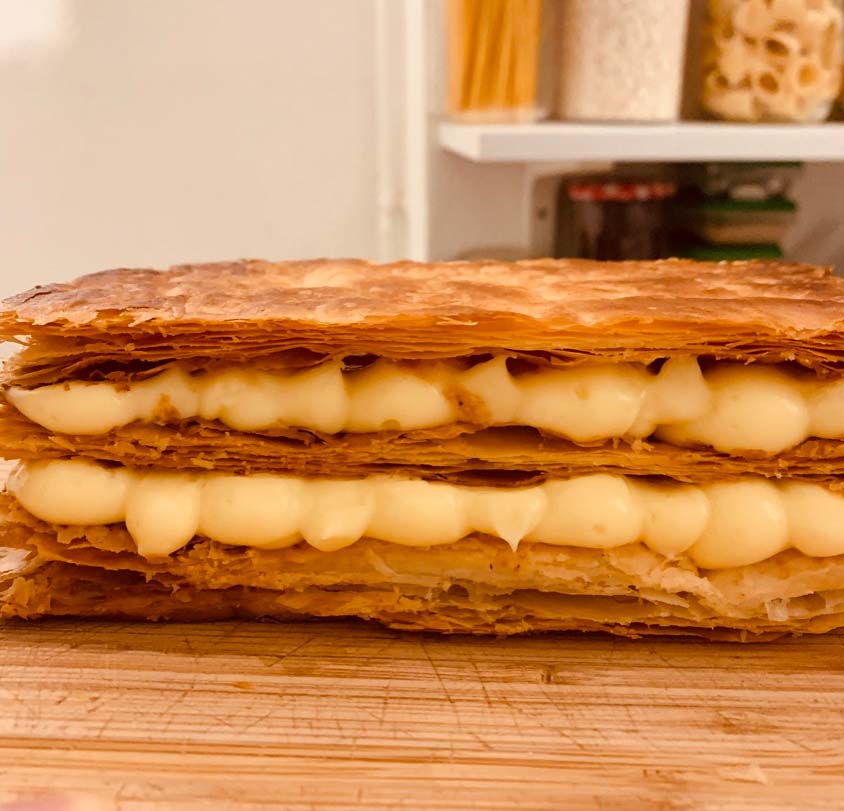 Puff pastry and vanilla pastry cream. A thousand layers more or less.